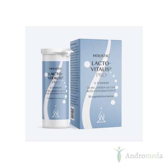 Holistic LactoVitalis Pro jest suplementem diety zawierającym kapsułki składające się z co najmniej 20 miliardów korzystnych dla organizmu bakterii z 12 różnych szczepów, w tym jedną z najlepiej poznanych L. rhamnosus GG. Minimalnie 90% bakterii dotrze do jelita w stanie nienaruszonym. LactoVitalis Pro zawiera też witaminę C i witaminę B2.